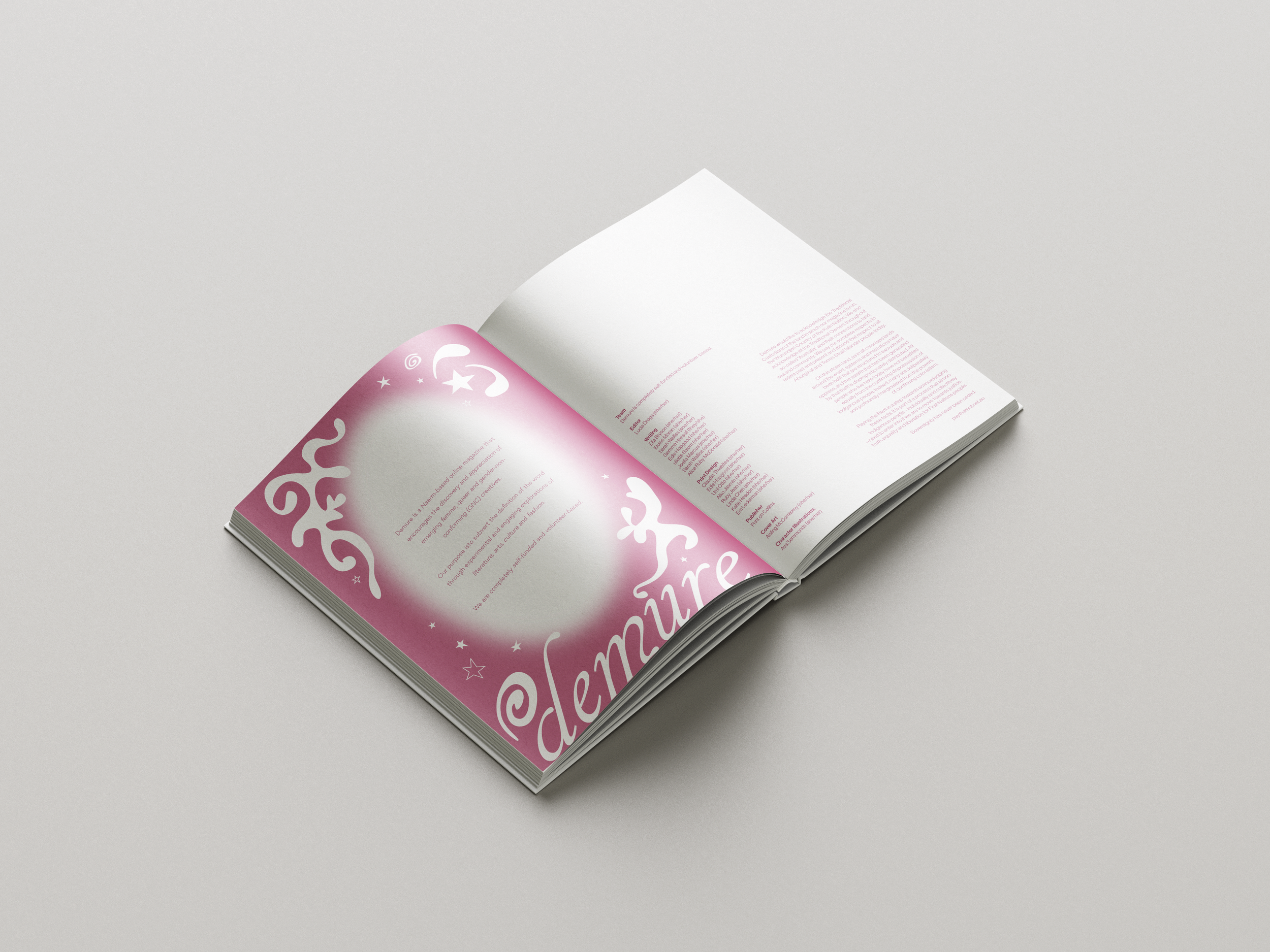 Print Design: Claudia Thwaites (she/her), Edie Hopgood (she/her), Umi Otto (she/her), Aiko Jasmin (she/her), Ruby Jean (she/her), Linda Chen (she/her), Katie Headon (she/her), Em Lederman (she/her)